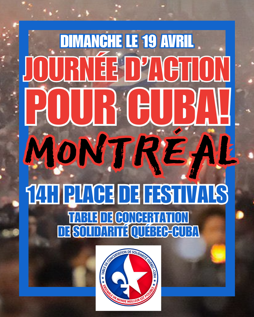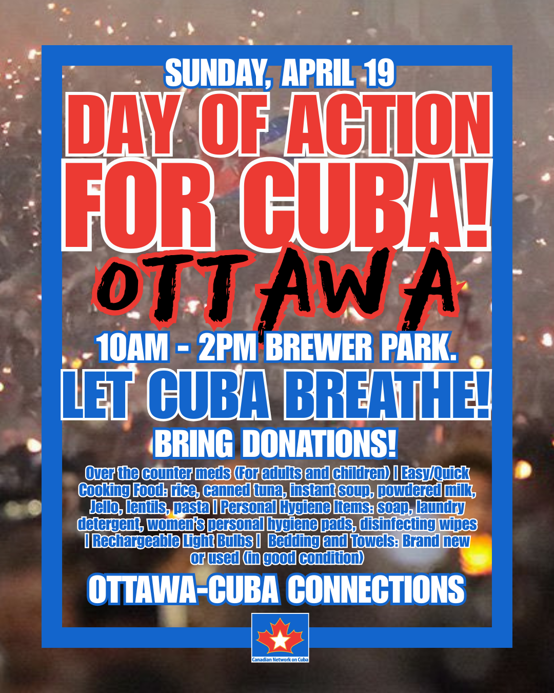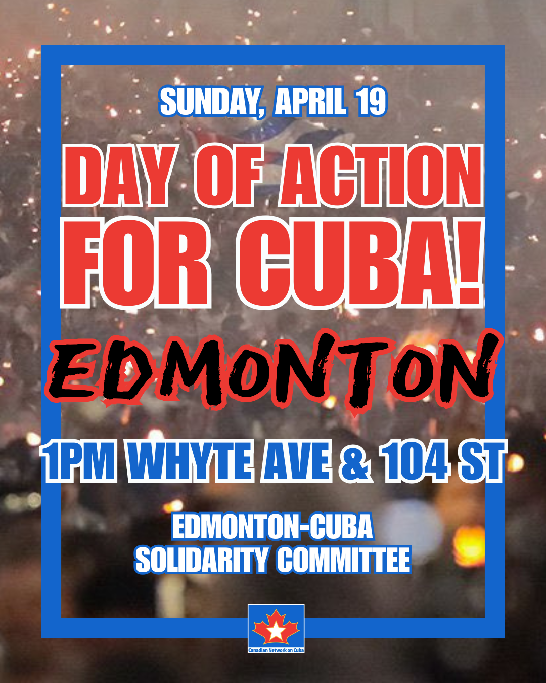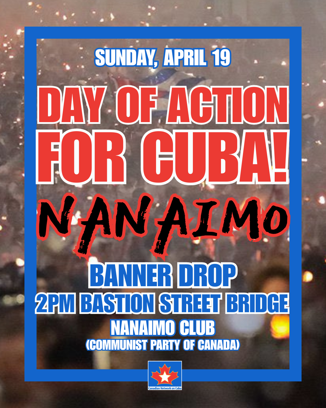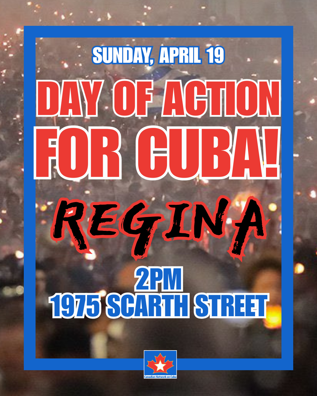 The Canadian Network on Cuba has called for a Day of Action on Sunday, April 19th. Member groups have been hard at work organizing actions in cities all across Canada.