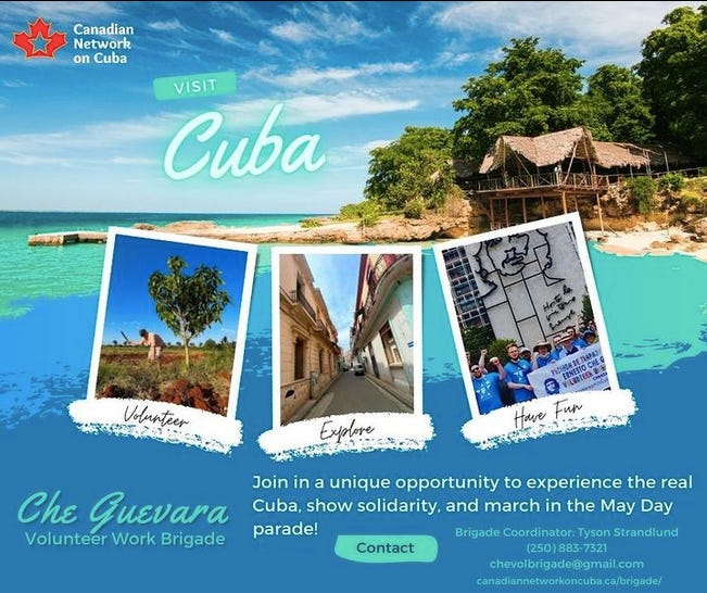 If you’d like your Cuba Solidarity event featured in an upcoming edition of this newsletter, please email the details and event poster to webmaster@canadiannetworkoncuba.ca