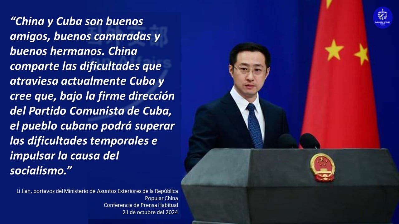 "The US blockade of Cuba has wreaked havoc on Cuba’s socioeconomic development and people’s life. China once again calls on the US to follow the purposes and principles of the UN Charter and basic norms of international law, fully lift the blockade and sanctions on Cuba as soon as possible, and remove Cuba from the list of 'state sponsors of terrorism.' This is in the interests of both the US and Cuba and the two peoples, and conducive to regional stability and development. It is also what the wider international community calls for."