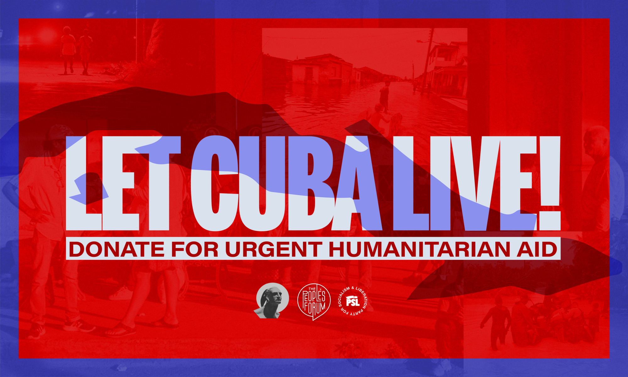 The Let Cuba Live donation drive for humanitarian aid is a collaborative effort between The People’s Forum, The Hatuey Project, and The Party for Socialism & Liberation.