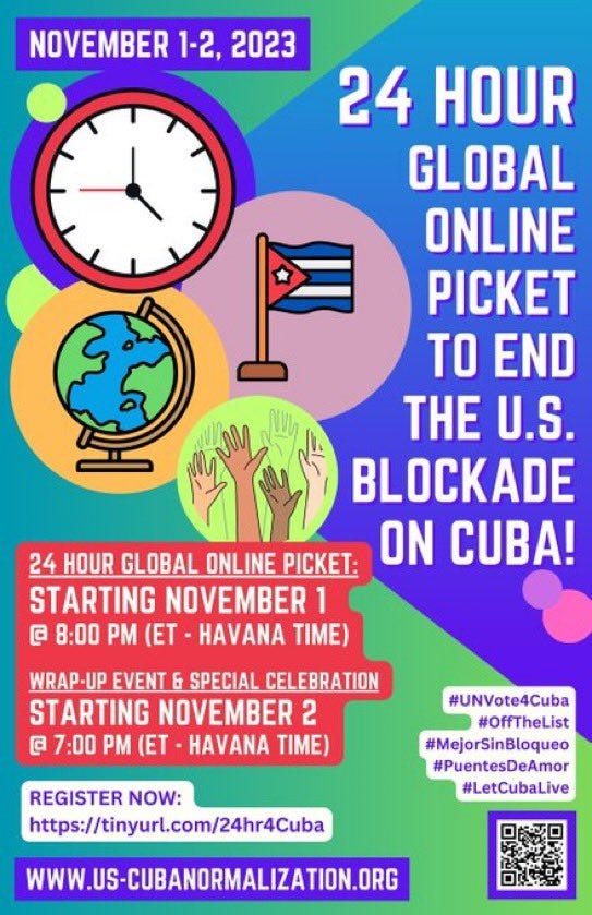 Don't miss it and participate in the 24-hour Global Online Picket to End the U.S. Blockade on Cuba!